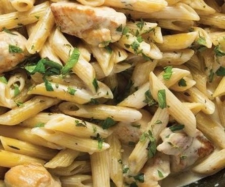 grilled, boneless chicken in a creamy alfredo sauce over penne pasta